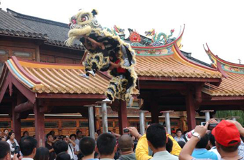 第二屆中國非物質(zhì)文化遺產(chǎn)博覽會(huì)9月6日-10日在棗莊臺兒莊古城隆重舉行。圖為精彩的舞獅表演。(王德慶/攝) |