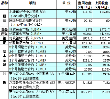 國(guó)際大宗商品期貨價(jià)格明細(xì)表[2012-09-24]