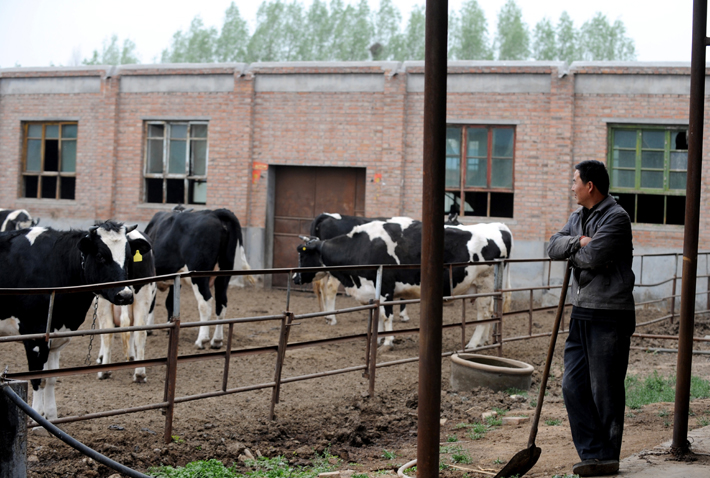 “現(xiàn)在養(yǎng)奶牛一年不如一年,我們這里好多奶農都堅持不下去了。合作社2010年3月的時候有2700多頭奶牛,現(xiàn)在還不到2300頭。很多人有賣牛的打算,可是又不知道賣了牛后怎么維生,所以下不了決心,就一直這樣將就著。”新樂市閔鎮(zhèn)興牧奶牛專業(yè)合作社負責人樊立波說。