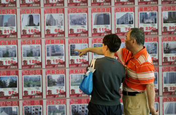 2012中國南京秋季房地產(chǎn)商品交易會(huì)日前在南京國際展覽中心開幕,本次展會(huì)共有28個(gè)樓盤及多家中介機(jī)構(gòu)提供近三萬套房源參展,主辦方舉辦的“換房一條龍”等服務(wù)活動(dòng)受到購房者的歡迎。圖為購房者在展會(huì)上觀看二手房房源信息。記者