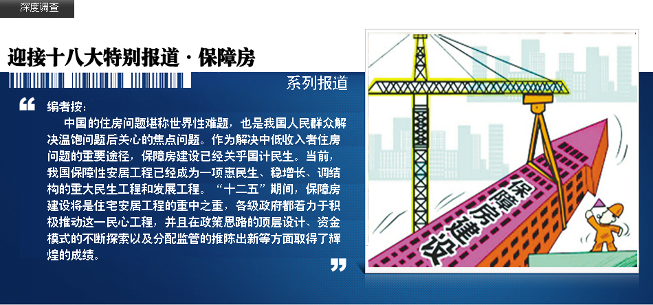 | 保障性安居工程建設(shè)一頭連著民生,一頭連著發(fā)展。自2008年底,我國(guó)實(shí)施大規(guī)模保障性安居工程建設(shè)以來(lái),不僅讓2600多萬(wàn)戶城鎮(zhèn)家庭住上了新房,近1億人口的住房條件得到改善,而且在拉動(dòng)投資、改善內(nèi)需和管理通脹預(yù)期等方面,凸顯出巨大的正面效應(yīng)。 | |