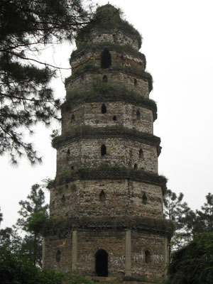 位于南溪區(qū)江南鎮(zhèn)紅林山頂?shù)摹版?zhèn)南塔”,俗稱“老塔”,建于元明之際,通高28.25米,樓閣式磚塔,呈八角形,7級,各級均有神龕,供祀佛像。塔內(nèi)為螺旋式石蹬和磚蹬,可由底盤旋達(dá)頂層。整個(gè)塔內(nèi)透光、通氣、通風(fēng)設(shè)計(jì)科學(xué),有防震、避雷設(shè)施,一層和三層天花板上有“二龍搶寶、雙鳳朝陽”石刻。該塔風(fēng)格粗獷凝重、古樸滄桑,極具元明風(fēng)韻。