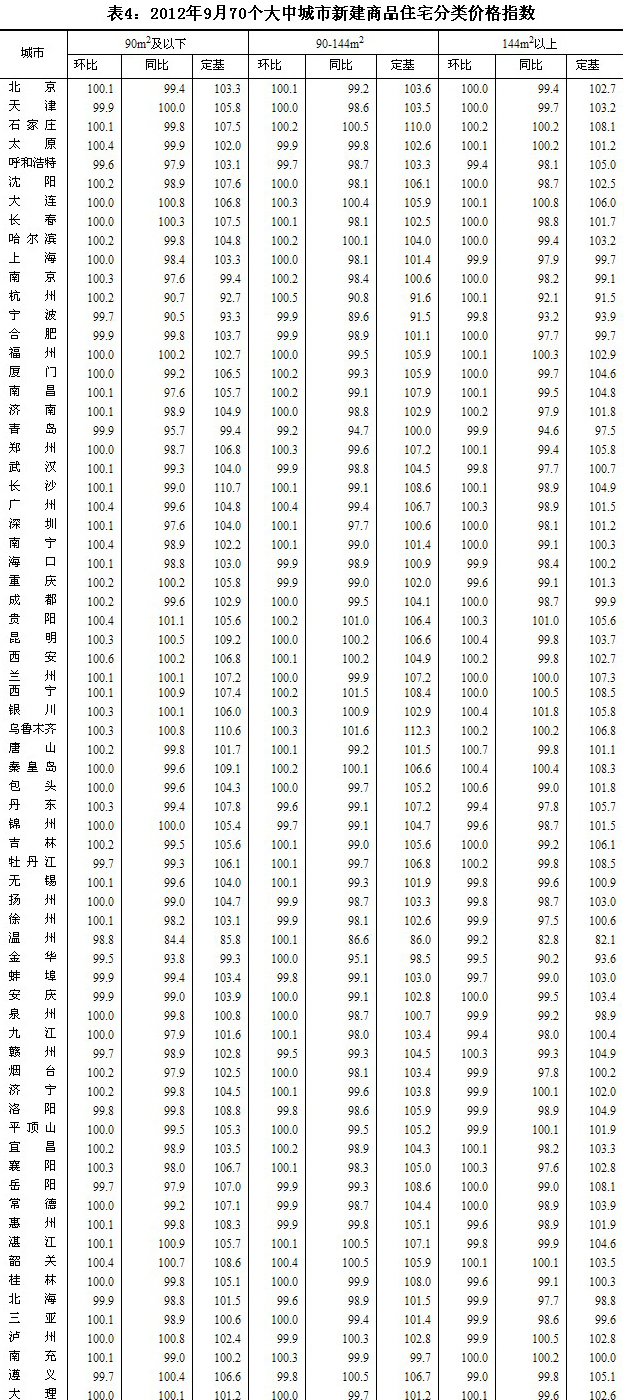 2、現行《住宅銷售價格統(tǒng)計調查方案》自2011年1月起開始實施,2011年10月70個大中城市全部報送了網簽數據。由于各個城市報送網簽數據的初始時間不同步,因此2012年10月前,部分城市的數據與以往歷史數據不完全可比。