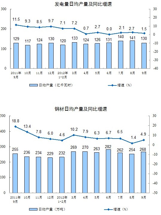 分輕重工業(yè)看,9月份,重工業(yè)增加值同比增長9.3