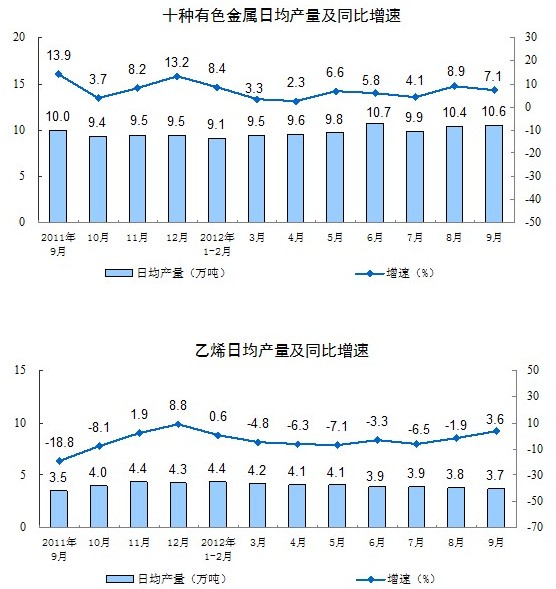 分行業(yè)看,9月份,41個大類行業(yè)中有40個行業(yè)增加值保持同比增長。其中,紡織業(yè)增長10.1%,化學原料和化學制品制造業(yè)增長10.8%,非金屬礦物制品業(yè)增長10.0%,黑色金屬冶煉和壓延加工業(yè)增長9.6%,通用設(shè)備制造業(yè)增長7.2%,汽車制造業(yè)增長6.3%,鐵路、船舶、航空航天和其他運輸設(shè)備制造業(yè)增長4.8%,電氣機械和器材制造業(yè)增長8.1%,計算機、通信和其他電子設(shè)備制造業(yè)增長10.0%,電力、熱力的生產(chǎn)和供應(yīng)業(yè)增長3.3%。
