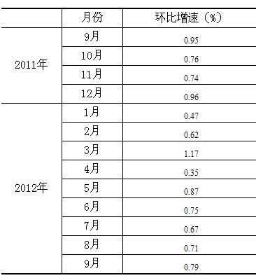 根據(jù)季節(jié)調(diào)整模型自動修正結(jié)果,對2011年9月份至2012年8月份的規(guī)模以上工業(yè)增加值環(huán)比增速進行修訂。修訂結(jié)果及2012年9月份環(huán)比數(shù)據(jù)如下: