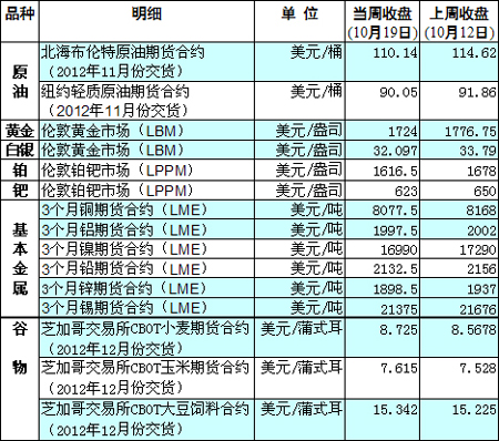 國際大宗商品期貨價格明細(xì)表[2012-10-22]