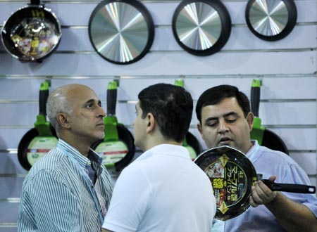 第112屆廣交會(huì)二期于10月27日閉幕。來(lái)自大會(huì)的數(shù)據(jù)顯示,本屆到會(huì)采購(gòu)商比上屆同期下降11.38%,成交總體情況不容樂(lè)觀(guān)。圖為采購(gòu)商在廣交會(huì)二期的一個(gè)廚具展位參觀(guān)。