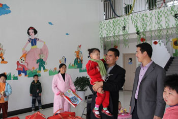 2012年11月3日,寒流驟至,室外天氣寒冷,但盱眙縣兒童福利院里卻暖意融融。為了讓生活在這里的孤殘兒童過得更加健康、幸福,邵建波、陳穎力、劉其軍一行,特地抽空來看望這里的孤殘兒童,為他們送去了電子琴、復(fù)讀機(jī)、牛奶等學(xué)習(xí)生活用品,讓他們感受到濃濃的愛意。