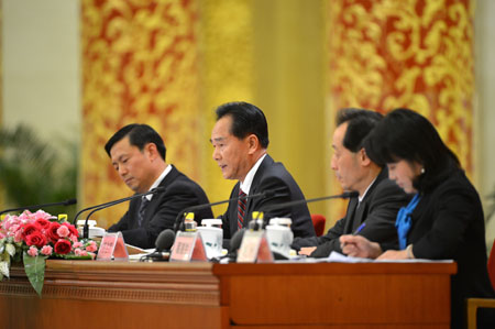 11月7日,中國共產(chǎn)黨第十八次全國代表大會新聞中心在北京舉行首次新聞發(fā)布會。這是大會新聞發(fā)言人蔡名照(左二)在介紹情況。 蔡名照在回答記者提問時說,今年以來,面對復雜嚴峻的國內(nèi)外環(huán)境,我們堅持穩(wěn)中求進的工作總基調(diào),加強和改善宏觀調(diào)控,特別是5月份以來出臺了一系列預調(diào)微調(diào)的政策措施,對增強市場信心、促進經(jīng)濟企穩(wěn)發(fā)揮了積極作用。