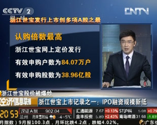 經(jīng)觀黃利明:今日,浙江世寶上市首日漲幅已520.15%,券商估平均價4.85元,現(xiàn)股價卻已飆至16元。其港股昨日收盤2.72港元(合人民幣2.19元)。今天又發(fā)盈利預(yù)測——全年凈利潤降30%,測算今年每股收益為0.285元,其市盈率已達57倍,但中小板平均市盈率為30倍,以此測算極限的合理價也僅為8.55?蓱z的小散,被忽悠。