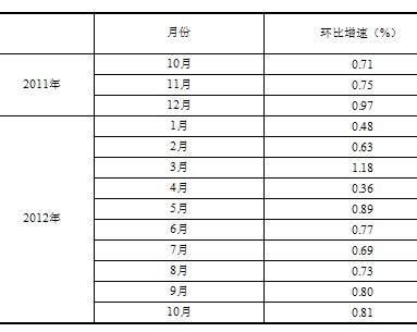 根據(jù)季節(jié)調(diào)整模型自動(dòng)修正結(jié)果,對(duì)2011年10月份至2012年9月份的規(guī)模以上工業(yè)增加值環(huán)比增速進(jìn)行修訂。修訂結(jié)果及2012年10月份環(huán)比數(shù)據(jù)如下: