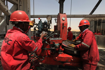 | 正在操作的中石油尼日爾鉆井員工 |