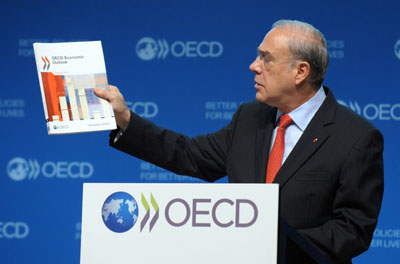 總部位于巴黎的經(jīng)濟(jì)合作與發(fā)展組織(簡稱經(jīng)合組織)27日發(fā)布新版“經(jīng)濟(jì)展望報告”。經(jīng)合組織秘書長安赫爾·古里亞當(dāng)日在發(fā)布會上表示,全球經(jīng)濟(jì)明年將出現(xiàn)顯著下滑,而歐債危機“當(dāng)前仍是世界經(jīng)濟(jì)最大威脅”。古里亞指出,盡管各國已采取應(yīng)對措施,但一些國家的債務(wù)永久化問題有可能引發(fā)連鎖事件,將全球經(jīng)濟(jì)拖入衰退之中。經(jīng)合組織在報告中下調(diào)了全球經(jīng)濟(jì)增長預(yù)期,預(yù)計今年全球經(jīng)濟(jì)僅增長2.9%,明年增幅為3.4%。此外,經(jīng)合組織還預(yù)期,美國今年經(jīng)濟(jì)增速由此前預(yù)計的2.6%降至2.2%,2013年增速將降至2.0%。