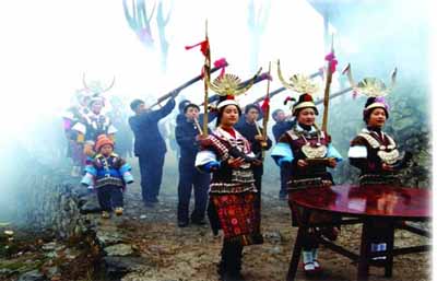 石龍寨西家位于凱里市西北部,距市中心20公里,因寨內(nèi)有惟妙惟肖的水牛石、姊妹石、將軍石等十大石景得名,具有“十龍歸位”之稱,故名“石龍寨”。寨上居住著神秘而古老的西家人。石龍寨以水牛坡為主峰,東可視凱里全景,南與香爐山對(duì)峙相望,西見平初螺絲巖,北見灣水大坡,古樹成林樹木蔥蘢,環(huán)境優(yōu)美。西家風(fēng)情古樸濃郁,原生態(tài)的歌舞、習(xí)俗、節(jié)慶等深厚的傳統(tǒng)文化保留完整,傳承至今。