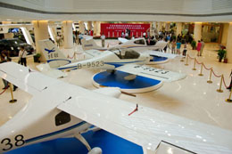 二、商務(wù)機(jī)展區(qū),是由無(wú)限航空打造的中國(guó)首家私人飛機(jī)展銷交易中心,分為商務(wù)機(jī)體驗(yàn)區(qū)、飛行用品商店、小型飛機(jī)實(shí)物展示等部分;