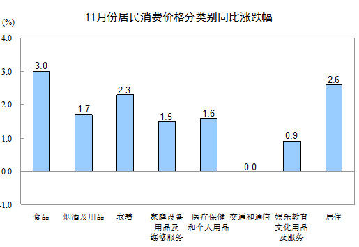 據(jù)測(cè)算,在11月份2.0%的居民消費(fèi)價(jià)格總水平同比漲幅中,去年價(jià)格上漲的翹尾因素約為0.3個(gè)百分點(diǎn),新漲價(jià)因素約為1.7個(gè)百分點(diǎn)。