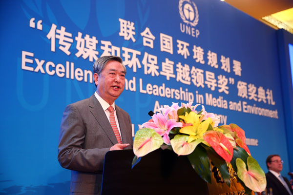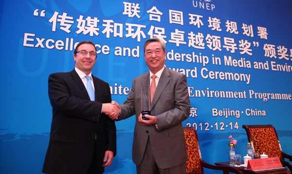 聯(lián)合國環(huán)境規(guī)劃署14日在北京舉行“傳媒和環(huán)保卓越領(lǐng)導(dǎo)獎”頒獎典禮。新華社社長李從軍因為對全球環(huán)保事業(yè)的努力,成為這一獎項的首位得主。