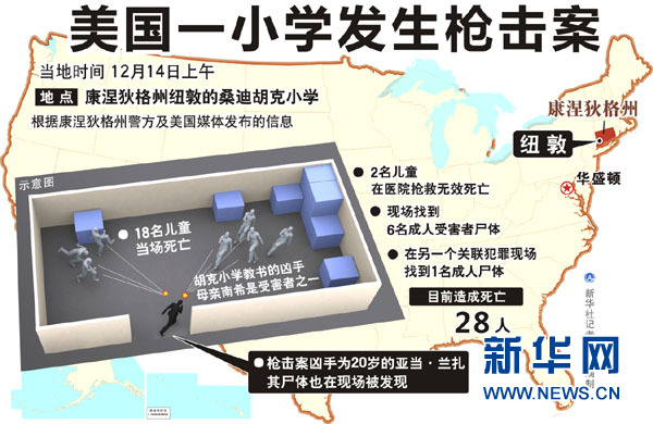 美國康涅狄格州一所小學(xué)14日發(fā)生槍擊案,造成重大傷亡。當(dāng)?shù)孛襟w報(bào)道說,包括槍手在內(nèi)的近30人死亡,其中大多數(shù)為兒童。