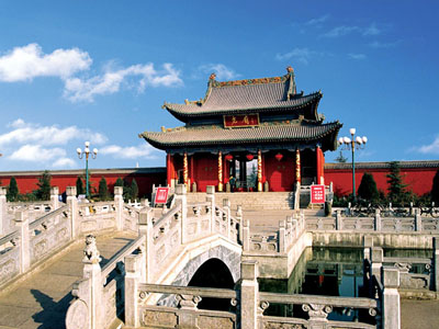 堯廟位于臨汾市秦蜀路南端,為山西省重點(diǎn)文物保護(hù)單位。堯廟原建于汾河西岸,晉元康中徙汾東,唐顯慶三年(685年)遷至今址,距今已1300余年,歷代均為國(guó)家級(jí)祭祀之所,并進(jìn)行過(guò)多次修葺與擴(kuò)建。堯廟現(xiàn)占地5.33公頃,主要有山門(mén)、王鳳樓、堯井亭、廣運(yùn)殿、寢宮等古建筑群,以及距今已1600余年的漢代奇樹(shù)柏抱槐、柏抱楸、鳴鹿柏、夜笑柏等景觀。