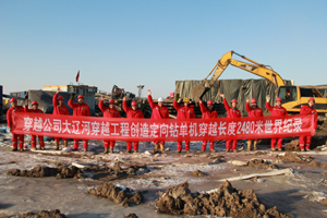 12月17日9時(shí)許,當(dāng)預(yù)置管道從26米深的大遼河地下成功穿越在河?xùn)|岸的大堤上緩緩破土而出時(shí),整個(gè)施工現(xiàn)場一片沸騰。一項(xiàng)水平定向鉆單機(jī)穿越長度2480米的世界紀(jì)錄再次在中國石油管道人手中誕生。