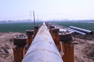 大遼河穿越的鉆機(jī)場地和出土點(diǎn)都為水稻田。施工準(zhǔn)備階段,正值水稻成熟時(shí),田地積水多,場地十分泥濘,設(shè)備根本無法進(jìn)入現(xiàn)場正常施工。為保障設(shè)備安全進(jìn)場組裝,同時(shí)不影響其他稻田灌溉,項(xiàng)目部果斷決定在場地周邊開挖排水溝,同時(shí)在整個(gè)場地底層鋪放了五層草簾,草簾上方又鋪設(shè)了一層道板,在設(shè)備反復(fù)行走的地方加鋪了鋼板。這種加鋪方法,將對耕地的占用和破壞程度降到了最低,充分保障了當(dāng)?shù)卮迕竦睦娌皇苡绊憽?BR> 10月8日,大遼河穿越工程正式打孔開鉆。同時(shí),工程進(jìn)入管線預(yù)制階段。受到場地限制,管線焊接所處位置均為水稻田,水深達(dá)0.2m,淤泥較深,設(shè)備難以進(jìn)場,采用常規(guī)的管線焊接作業(yè)幾乎不可能,工程進(jìn)展緩慢。眼看這種情形,賈偉波看在眼里,急在心上。項(xiàng)目部經(jīng)認(rèn)真勘察研究地形地貌,最終制訂了拖管焊接法,即征用一段旱田進(jìn)行焊接作業(yè),焊接一道焊口后用4臺挖掘機(jī)向出土點(diǎn)方向拖拽,3臺挖掘機(jī)在尾端推動,管子移動后再在原焊接口處進(jìn)行下一道口的焊接。該方法使得管線預(yù)制工作在冬季來臨之前順利完成,為整個(gè)施工的順利進(jìn)行打下了基礎(chǔ)。