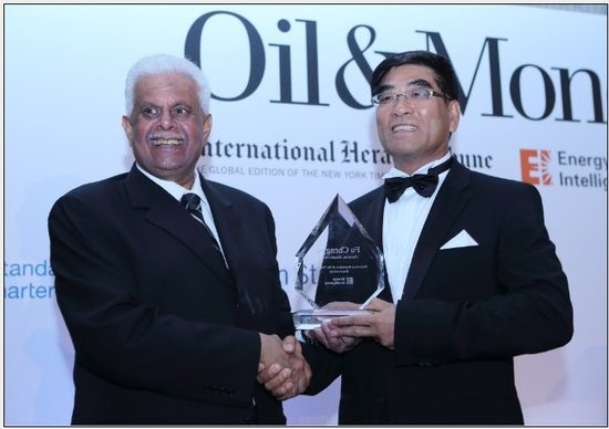 11月12日,在英國倫敦,傅成玉榮獲世界能源行業(yè)權威機構“能源情報集團”評選的2012年度“全球石油業(yè)年度領袖人物”大獎。這是中國企業(yè)家首次獲此殊榮。傅成玉在演講中袒露沉重而堅定的心緒:“無論是今天的榮譽還是今后我在中國石化任董事長的職業(yè)生涯,都將致力于一個共同的目標——在滿足日益增長的人類需求和減少對環(huán)境的影響之間取得平衡,謀求人與自然的和諧共榮。這也許是當今時代最大的挑戰(zhàn)!