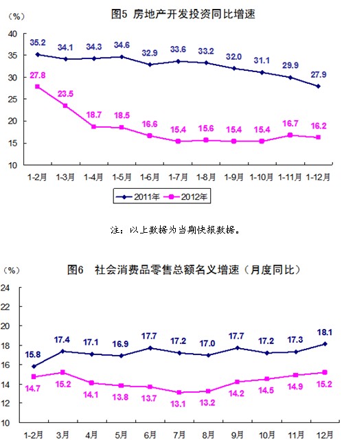 (5)固定資產(chǎn)投資(不含農(nóng)戶)和房地產(chǎn)開發(fā)投資增速與上年比較,均按照2011年同口徑年報數(shù)進行比較。