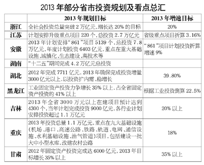 《經(jīng)濟參考報》記者多方了解發(fā)現(xiàn),在地方政府的增長計劃中,投資仍是重中之重,即使一些下調(diào)了增長目標的市也不例外。如武漢提出,堅持把加快工業(yè)發(fā)展放在經(jīng)濟工作首位,今年投資50億元以上項目投產(chǎn)5個,開工建設5個;10億至50億元項目投產(chǎn)10個,開工建設10個。工業(yè)投資突破2400億元。合肥也提出,2013年一批超50億元的重特大項目將在合肥誕生,主要圍繞巢湖綜合治理開發(fā)、支柱產(chǎn)業(yè)、新興產(chǎn)業(yè)、城鄉(xiāng)基礎設施、節(jié)能環(huán)保、民生工程等重點領域,確保完成全社會固定資產(chǎn)投資4600億元。巴中市第三屆人民代表大會第三次會議提出,該市今年經(jīng)濟增長目標是實現(xiàn)地區(qū)生產(chǎn)總值480億元,同比增長15%。其中,全社會固定資產(chǎn)投資650億元,增長35%。會上提出的今年主要任務共七項,第一項為“強化項目推進,保持投資較快增長”。