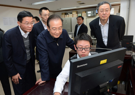 1月21日,國務(wù)院總理溫家寶來到中國人民銀行調(diào)研,看望調(diào)查統(tǒng)計司、貨幣政策司等司局工作人員,在金融信息中心聽取國庫業(yè)務(wù)系統(tǒng)和個人、企業(yè)征信系統(tǒng)建設(shè)及應(yīng)用情況介紹。溫家寶在隨后的座談會上強調(diào),進一步推進金融改革,加強現(xiàn)代金融企業(yè)制度建設(shè),穩(wěn)步推進利率市場化,完善人民幣匯率形成機制,擴大人民幣在跨境貿(mào)易和投資中的使用,逐步實現(xiàn)人民幣資本項目可兌換。