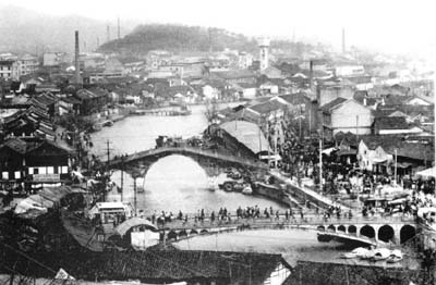 游人至余姚,多要去看看橫跨姚江的通濟橋。這座拱型三孔石橋長43.4米,主孔凈跨14.2米,橋面中心寬5.61米,兩側(cè)有望柱24根,欄板22塊,雕飾象、獅、蓮花等圖像。主孔兩側(cè)各鐫有楹聯(lián)。東側(cè)是“千里遙吞滄海月;萬年獨砥大江流。”;西側(cè)是“一曲蕙蘭飛彩?;雙城煙雨臥長虹!闭麄橋型顯得穩(wěn)重、雄偉。遠遠望去,長虹中跨,體勢騰輝。因它原是姚江上最長最高的橋,故有“浙東第一橋”之稱。