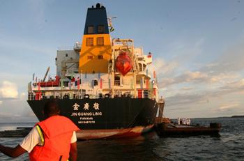 中國(guó)遠(yuǎn)洋旗下的“金廣嶺”輪。新華社發(fā) |