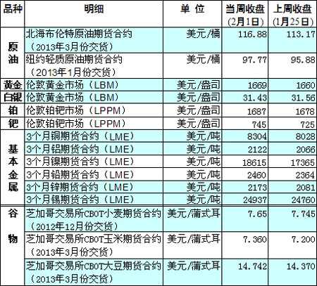 國際大宗商品期貨價格明細(xì)表[2013-02-04]