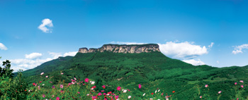 除了豐富的高句麗遺跡外,五女山主峰海拔824米,山峰酷似玲瓏翠屏,四周懸崖峭壁,巍峨險峻。山頂?shù)貏萜教,土質(zhì)肥活,草木茂盛。南面有一隘口,乘纜車可達山頂。站在東端峰巔,遙望遼寧省最大的水庫桓龍湖,煙波浩渺,云天山水,渾然一體。