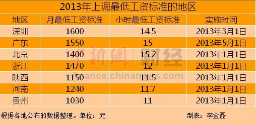2013年7省市提高最低工資標(biāo)準(zhǔn) 深圳1600元領(lǐng)跑