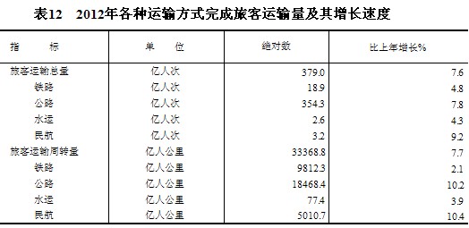 全年旅客運輸總量379億人次,比上年增長7.6%。旅客運輸周轉量33369億人公里,增長7.7%。