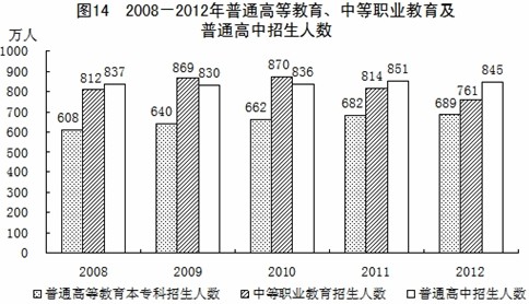 全年研究生教育招生59.0萬人,在學(xué)研究生172.0萬人,畢業(yè)生48.6萬人。普通高等教育本專科招生688.8萬人,在校生2391.3萬人,畢業(yè)生624.7萬人。各類中等職業(yè)教育招生761.0萬人,在校生2120.3萬人,畢業(yè)生673.6萬人。全國(guó)普通高中招生844.6萬人,在校生2467.2萬人,畢業(yè)生791.5萬人。全國(guó)初中招生1570.8萬人,在校生4763.1萬人,畢業(yè)生1660.8萬人。普通小學(xué)招生1714.7萬人,在校生9695.9萬人,畢業(yè)生1641.6萬人。特殊教育招生6.6萬人,在校生37.9萬人,畢業(yè)生4.9萬人。幼兒園在園幼兒3685.8萬人。