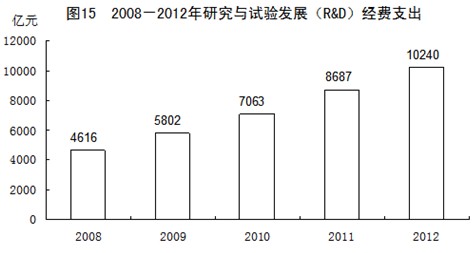全年研究與試驗(yàn)發(fā)展(R&D)經(jīng)費(fèi)支出10240億元,比上年增長(zhǎng)17.9%,占國(guó)內(nèi)生產(chǎn)總值的1.97%,其中基礎(chǔ)研究經(jīng)費(fèi)498億元。全年國(guó)家安排了1701項(xiàng)科技支撐計(jì)劃課題,1165項(xiàng)“863”計(jì)劃課題。累計(jì)建設(shè)國(guó)家工程研究中心130個(gè),國(guó)家工程實(shí)驗(yàn)室128個(gè)。累計(jì)建設(shè)國(guó)家地方聯(lián)合工程研究中心149個(gè),國(guó)家地方聯(lián)合工程實(shí)驗(yàn)室180個(gè)。國(guó)家認(rèn)定企業(yè)技術(shù)中心達(dá)到887家。省級(jí)企業(yè)技術(shù)中心達(dá)到8137家。實(shí)施新興產(chǎn)業(yè)創(chuàng)投計(jì)劃[21],累計(jì)支持設(shè)立102家創(chuàng)業(yè)投資企業(yè),資金總規(guī)模近290億元,投資了創(chuàng)業(yè)企業(yè)238家。全年受理境內(nèi)外專利申請(qǐng)205.1萬件,其中境內(nèi)申請(qǐng)188.6萬件,占91.9%。受理境內(nèi)外發(fā)明專利申請(qǐng)65.3萬件,其中境內(nèi)申請(qǐng)52.3萬件,占80.1%。全年授予專利權(quán)125.5萬件,其中境內(nèi)授權(quán)114.4萬件,占91.1%。授予發(fā)明專利權(quán)21.7萬件,其中境內(nèi)授權(quán)13.7萬件,占63.2%。截至年底,有效專利350.9萬件,其中境內(nèi)有效專利289.9萬件,占82.6%;有效發(fā)明專利87.5萬件,其中境內(nèi)有效發(fā)明專利43.5萬件,占49.7%。全年共簽訂技術(shù)合同28.2萬項(xiàng),技術(shù)合同成交金額6437.1億元,比上年增長(zhǎng)35.1%。全年成功發(fā)射衛(wèi)星19次。神舟九號(hào)載人飛船與天宮一號(hào)目標(biāo)飛行器順利實(shí)現(xiàn)首次空間交會(huì)對(duì)接,北斗二號(hào)衛(wèi)星導(dǎo)航系統(tǒng)完成區(qū)域組網(wǎng)并正式提供運(yùn)行服務(wù),“蛟龍”號(hào)載人深潛器海試成功突破7000米。