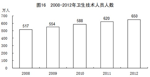 年末全國(guó)共有醫(yī)療衛(wèi)生機(jī)構(gòu)961830個(gè),其中醫(yī)院23005個(gè),鄉(xiāng)鎮(zhèn)衛(wèi)生院37128個(gè),社區(qū)衛(wèi)生服務(wù)中心(站)33646個(gè),診所(衛(wèi)生所、醫(yī)務(wù)室)179644個(gè),村衛(wèi)生室663355個(gè),疾病預(yù)防控制中心3506個(gè),衛(wèi)生監(jiān)督所(中心)3037個(gè)。衛(wèi)生技術(shù)人員650萬人,其中執(zhí)業(yè)醫(yī)師和執(zhí)業(yè)助理醫(yī)師252萬人,注冊(cè)護(hù)士242萬人。醫(yī)療衛(wèi)生機(jī)構(gòu)床位557萬張,其中醫(yī)院403萬張,鄉(xiāng)鎮(zhèn)衛(wèi)生院106萬張。全年甲、乙類法定報(bào)告?zhèn)魅静“l(fā)病人數(shù)321.7萬例,報(bào)告死亡16721人;報(bào)告?zhèn)魅静“l(fā)病率238.76/10萬,死亡率1.24/10萬。