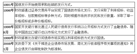 我國自1991年進行國債發(fā)行方式的市場化改革,1997年銀行間債券市場成立之后,政策性金融債券和國債陸續(xù)開始通過公開招標的方式發(fā)行,實現(xiàn)市場化定價。在2004年開始的新一輪債券市場創(chuàng)新中,面向金融機構(gòu)推出了一般性金融債、次級債、混合資本債、資產(chǎn)支持證券,面向非金融企業(yè)推出了短期融資券、中期票據(jù)、超短期融資券和集合票據(jù)等,均實行市場化方式定價。企業(yè)債早期由國家發(fā)展改革委審批,利率水平征求人民銀行意見,后來發(fā)改委簡化企業(yè)債核準程序,并逐步實現(xiàn)債券價格市場化。目前企業(yè)債發(fā)行利率仍然受到不得高于同期限銀行定期存款利率的40%的限制,短融和中票發(fā)行利率受到銀行間市場交易商協(xié)會公布的指導(dǎo)下限的約束,但總體上債券市場基本實現(xiàn)了市場化的定價方式。