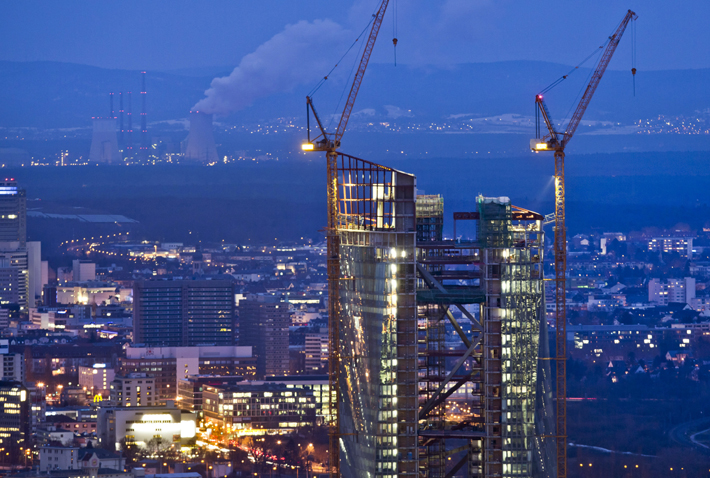 位于德國法蘭克福正在建設(shè)中的未來歐洲央行總部雙子大樓。新華社/EPA歐新 |