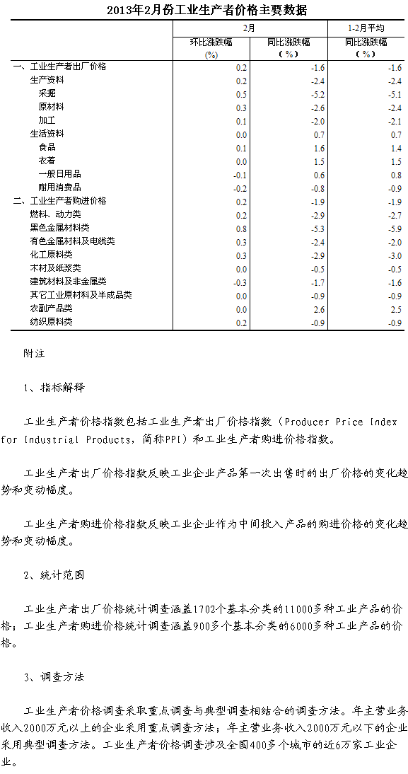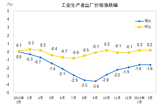 2013年2月份工業(yè)生產(chǎn)者價(jià)格變動(dòng)情況