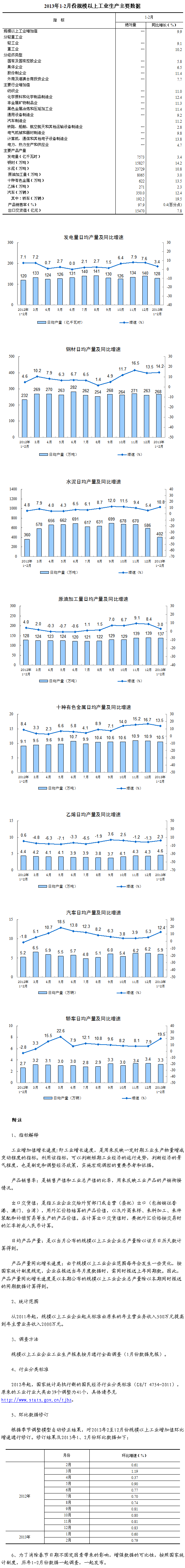 2013年1-2月份,規(guī)模以上工業(yè)增加值同比實(shí)際增長9.9%(以下增加值增速均為扣除價(jià)格因素的實(shí)際增長率),比2012年12月份回落0.4個(gè)百分點(diǎn)。從環(huán)比看,2月份,規(guī)模以上工業(yè)增加值比上月增長0.79%。
