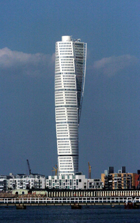 歐洲前衛(wèi)住宅摩天大廈馬爾默市的標志——“旋轉中心”。記者