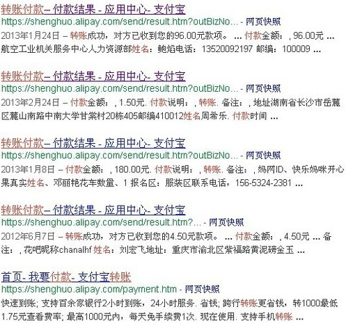 事實(shí)上,直接搜索“site:shenghuo.alipay.com”就能搜到轉(zhuǎn)賬信息,數(shù)量超過2000條。記者隨即致電支付寶24小時客服熱線95188反映情況,按照記者提供的方法搜索,的確發(fā)現(xiàn)這一嚴(yán)重安全漏洞,客服人員表示,此前并不知道谷歌中能夠搜索到轉(zhuǎn)賬信息,稱將記錄并向公司反映情況。
