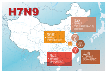 據(jù)中國疾病預(yù)防控制中心的統(tǒng)計(jì),截至7日17時(shí),全國共發(fā)現(xiàn)20例人感染H7N9禽流感確診病例,集中在上海、江蘇、浙江、安徽等地。其中7日上海市新確診2例人感染H7N9禽流感病例,均在救治中。至此,上海共發(fā)現(xiàn)10例人感染H7N9禽流感確診病例,其中死亡4例。