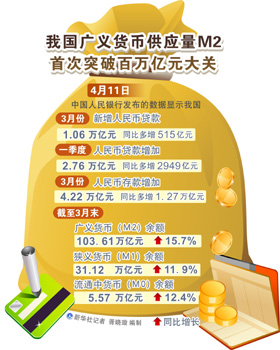 央行11日公布的數(shù)據(jù)顯示,3月末,廣義貨幣(M2)余額103.61萬億元,同比增長15.7%,這一增速遠(yuǎn)超政府設(shè)定的13%目標(biāo)。同時公布的信貸數(shù)據(jù)也遠(yuǎn)超預(yù)期。3月份,人民幣貸款增加1.06萬億元,同比多增515億元,這引起了機構(gòu)對政策面收緊的擔(dān)憂。