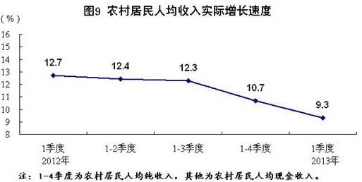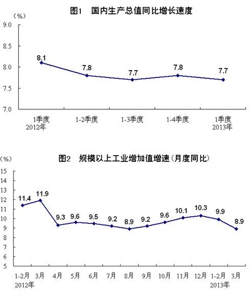 2012年各季度及2013年1季度GDP環(huán)比增速分別為1.6%、1.9%、2.1%、2.0%和1.6%。