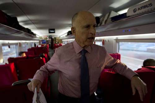 杰瑞-布朗率領(lǐng)的代表團上周四晚間還乘坐了北京南站開往上海的高鐵,5個小時的旅程給代表們留下了深刻印象。北京到上海的高鐵全長750英里大約相當于從圣迭哥到俄勒岡的距離。杰瑞-布朗在高鐵動車上發(fā)表了即興講話,并與同車的中國旅客握手交談。
