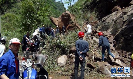 4月20日,四川省雅安市蘆山縣地震重災(zāi)區(qū)龍門鄉(xiāng)道路被塌方山石阻塞。